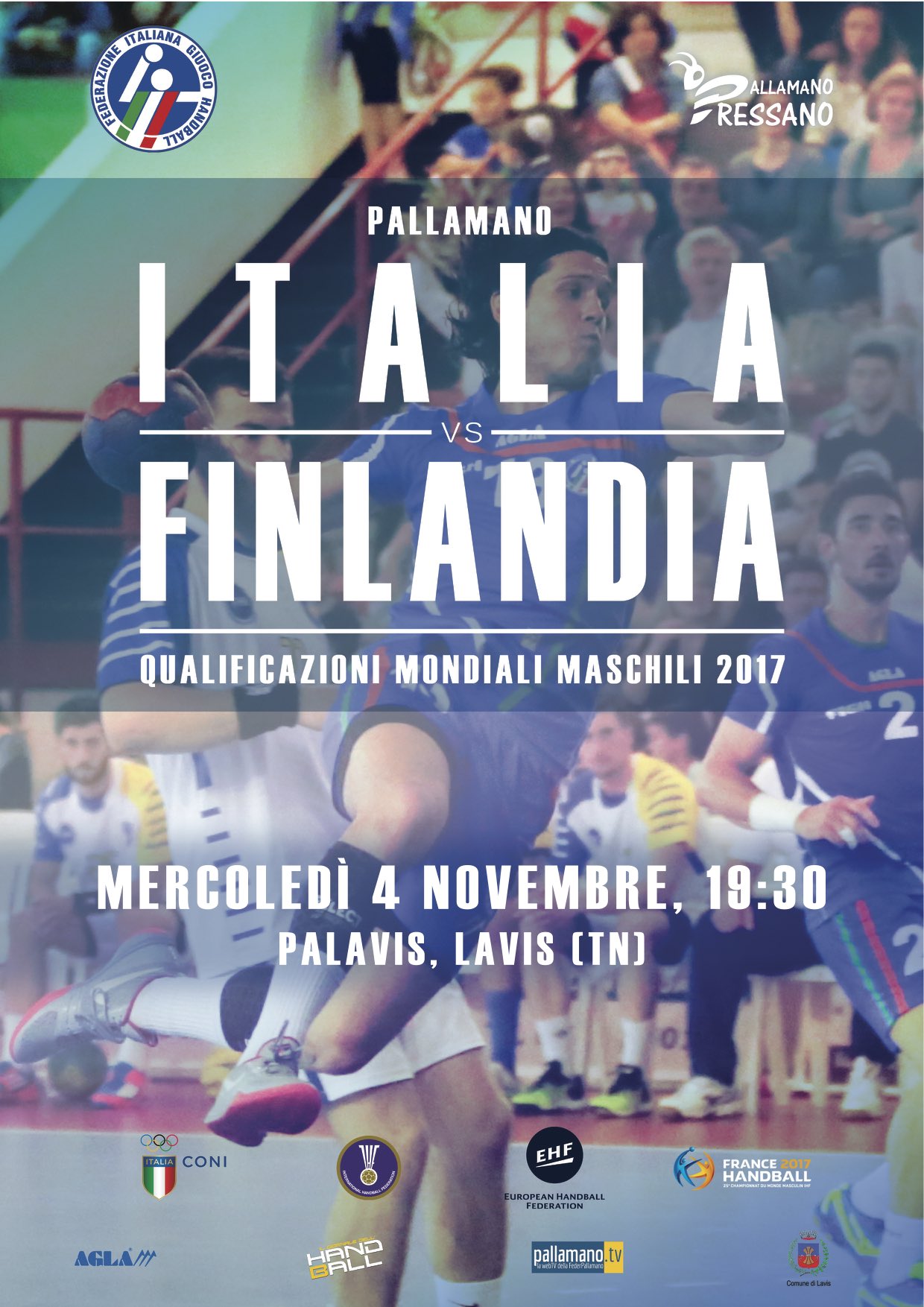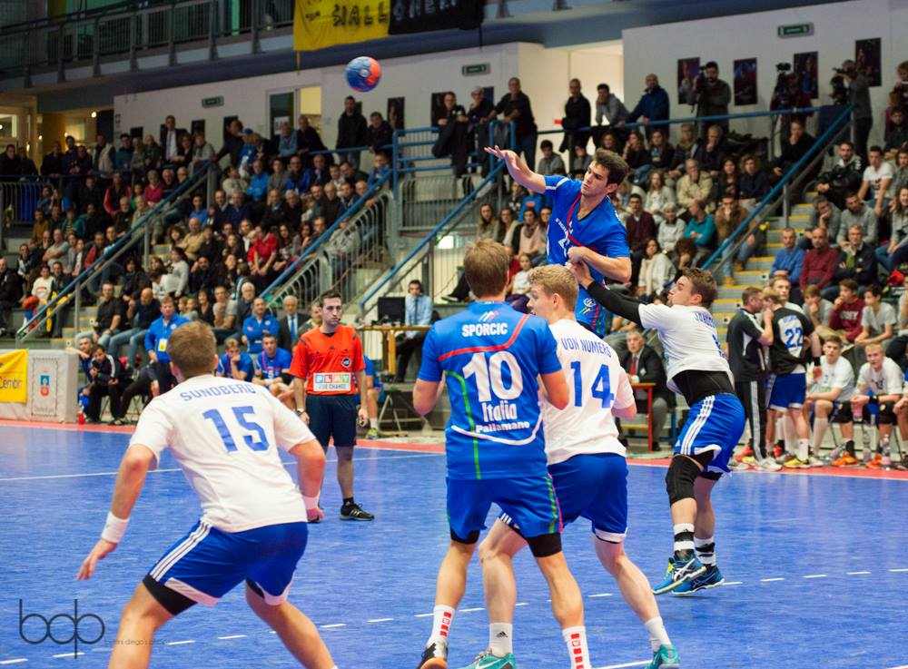 Grande Italia! L’urlo azzurro si alza dalle mura del Palavis dove è andato in scena il primo match di qualificazione ai Mondiali 2017, Italia-Finlandia. Finisce con una splendida e brillante vittoria degli azzurri che con una ripresa splendida mettono alle corde la truppa finlandese e trionfano per 27-19 davanti ai 1200 spettatori impazziti del Palavis, gremito come non mai. Evento perfettamente riuscito per la Pallamano Pressano che mostra a tutti il proprio attaccamento alla disciplina: grandi e piccini sono accorsi in massa per sostenere gli azzurri e li hanno trascinati alla vittoria in una serata epica che non verrà facilmente dimenticata. Con i pronostici in bilico e qualche incognita, il match prende il via nel catino lavisano ed a condurre sono i finlandesi: la tecnica dell’ala fuoriclasse Tamminen e la potenza del terzino Ronnberg spezzano la difesa azzurra e nei primi minuti l’Italia è costretta ad inseguire. In attacco, con qualche sbavatura di troppo, è il giallonero Stabellini a bucare la porta avversaria e la forbice fra le due squadre non aumenta eccessivamente. Col passare dei minuti la Finlandia prende però piede e sfruttando le superiorità numeriche tocca anche il 7-11 che gela il Palavis. Mister Radojkovic chiama timeout e la squadra italiana si trasforma: negli ultimi 7′ del primo tempo l’Italia conosce un lento crescendo e piazza un break di 4-0 che permette di ribaltare il risultato sulla prima sirena a firma Radovcic nella bolgia generale. Nella ripresa gli azzurri non demordono, serrano le file in difesa e pungono in attacco con i rigori di un Turkovic in formato cecchino: la vera forza però è nelle retrovie e si chiama Valerio Sampaolo. Il portierone del Pressano chiude la porta e l’Italia vola sul +4 che anima il pubblico di casa e lancia i ragazzi di Radojkovic. Solo sul 18-16 i finlandesi si avvicinano, poi è monologo azzurro: la difesa regge bene ed in attacco le soluzioni italiane fruttano quanto sperato; il diavio va così via via aumentando ed inizia lo show per il pubblico. Sampaolo chiude tutto ma quando a 5′ dalla fine il portiere di Chiaravalle chiude dai 6 metri l’ennesimo tiro e lancia Radovcic in contropiede viene giù il palazzetto: è la rete del +6 che vale la vittoria. Il punteggio dice poi 27-19, tondo e inappellabile: questa volta gli azzurri sono stati immensi, splendidi e puliti in tutti i fondamentali; una vittoria sicuramente tra le più belle degli ultimi anni.