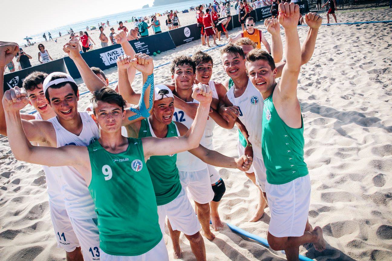 Nazionale Under 16 Beach esultaContinuano a regalare soddisfazioni i giovani della Pallamano Pressano CR Lavis che in questi giorni si trovano impegnati su due illustri fronti della pallamano nazionale ed europea. In primo piano la nazionale di Beach Handball Under 16 che sta disputando i campionati europei di categoria a Nazarè, in Portogallo. Il progetto avviato lo scorso anno sta dando grandi frutti e nelle prime due giornate di gare gli azzurrini guidati dal tecnico Malatino, nelle cui file figurano i tre gialloneri Marco Mengon, Simone Mengon e Davide Campestrini (su 10 convocati totali), hanno colto tre vittorie che valgono il primo posto nel girone ed il pass per i quarti di finale. In serie sono cadute sotto i colpi della truppa italiana le illustri formazioni di Croazia (2-1 agli shootout), Ungheria e Germania (entrambe 2 set a 0). Con questi preziosi risultati la squadra azzurra andrà a giocarsi l’accesso in semifinale contro la Polonia alle 18.00 di oggi (sabato). Vincendo l’Italia volerebbe fra le prime quattro d’Europa e conquisterebbe il pass per i Mondiali 2017, cogliendo così un risultato di grandissimo spessore.
