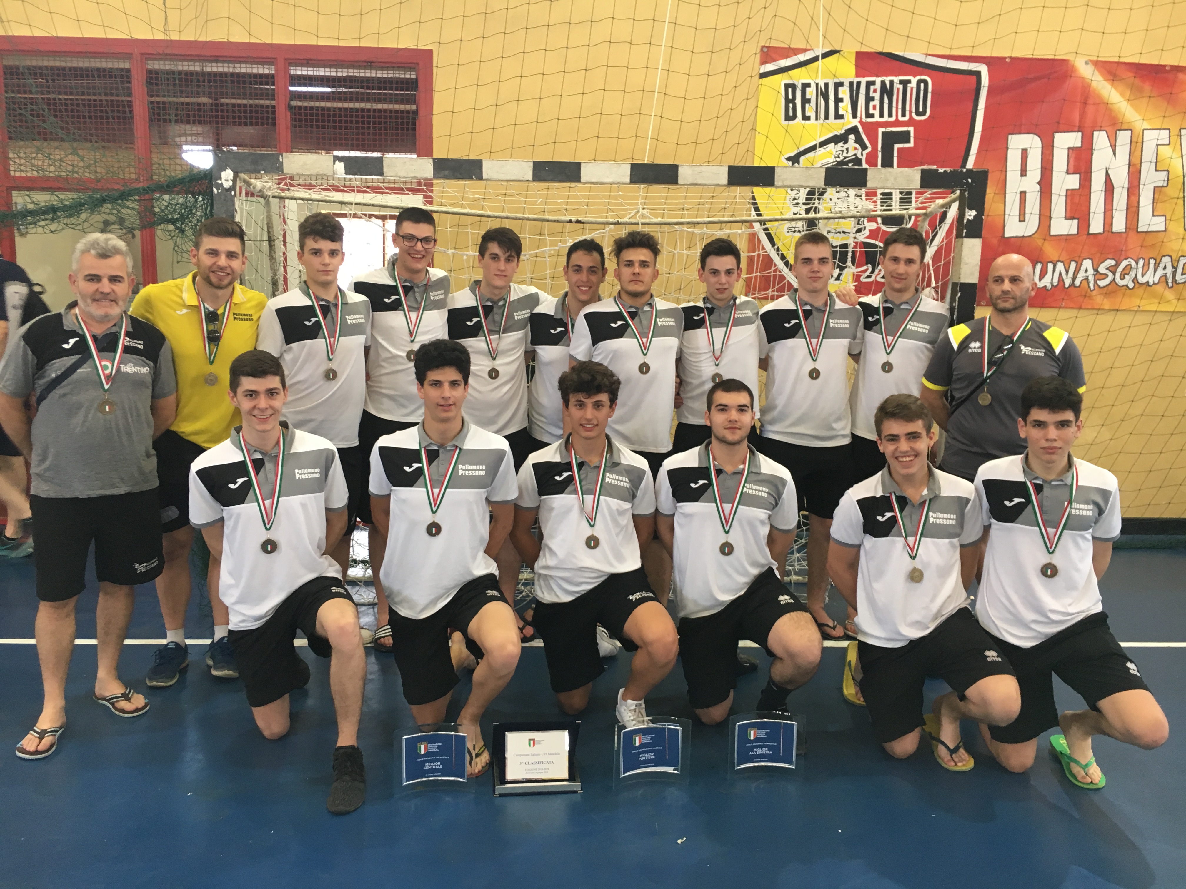 Youness Bouzriba miglior portiere e Marco Mazzucchi miglior ala sinistra del torneo testimoniano la grande qualità della rosa trentina. Per quanto riguarda la finale per il terzo e quarto posto, è stato un match senza storia, comandato dall’inizio alla fine da Cipriani e compagni: la squadra guidata da Alain Fadanelli ha saputo domare le velleità di un’Estense limitata dall’infortunio del portiere talento della nazionale Pavani. Con determinazione i gialloneri hanno saputo così portare a casa la vittoria, chiudendo ampiamente in vantaggio sul 35-20 del sessantesimo. Ora per la squadra giallonera c’è poco tempo per assimilare, perché metà della formazione schierata a Benevento partirà mercoledì alla volta di Cassano Magnago per le finali nazionali Under 17, dove il team trentino si giocherà ulteriori carte da medaglia.