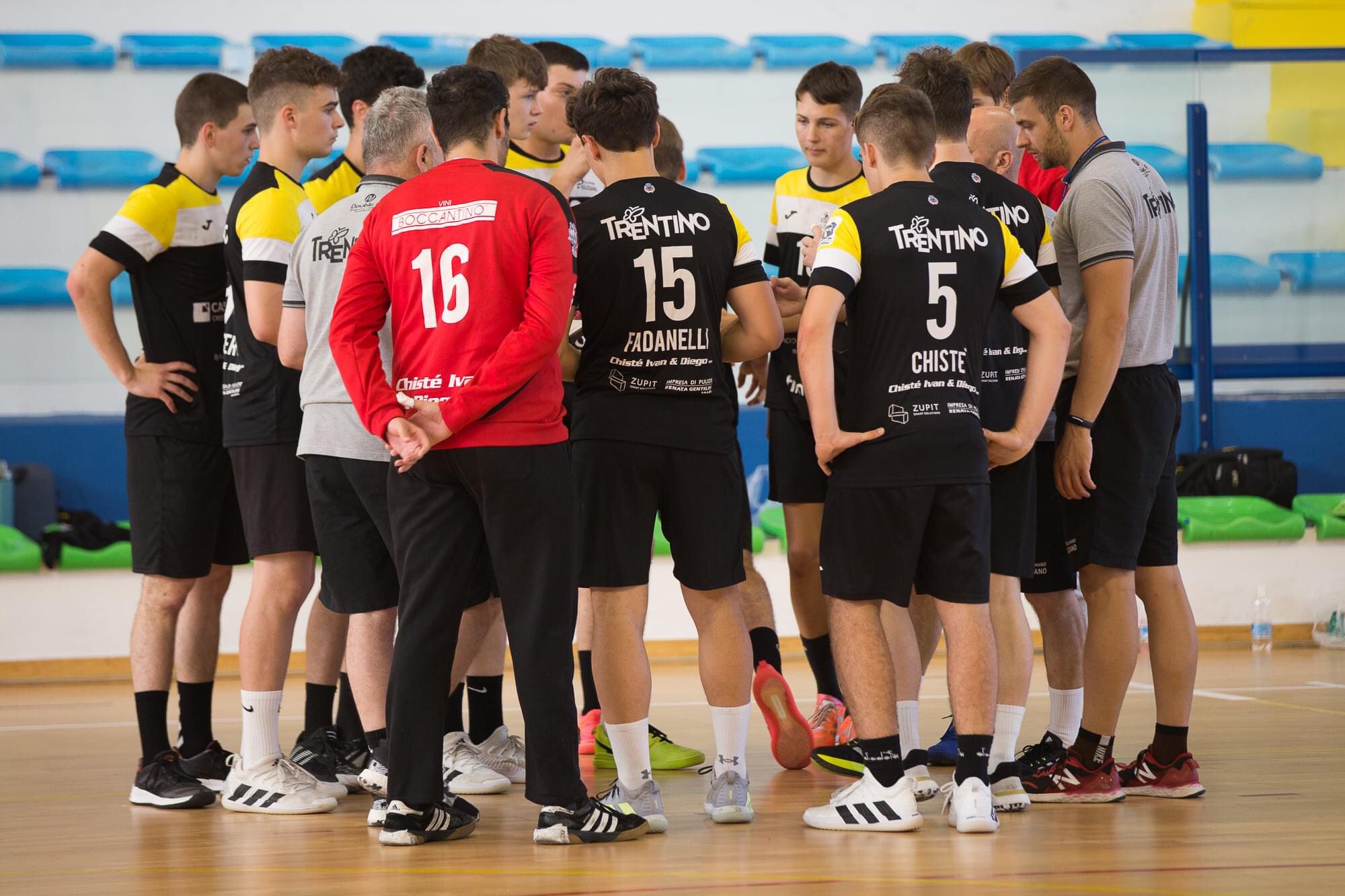 La Pallamano Pressano Cassa di Trento esce di scena a testa altissima dalle finali nazionali Under 19 in corso sui campi d’Abruzzo. L’attesissimo scontro diretto per l’accesso alla semifinale nel girone eliminatorio non ha tradito le attese: contro i diavoli neri del Merano è andata in scena una partita memorabile, degna del massimo livello di questo torneo, quasi come una finale anticipata. I ragazzi di Alain Fadanelli, sempre battuti in stagione dai cugini altoatesini, hanno toccato il cielo con un dito, sfiorando un autentico miracolo: la squadra giallonera ci ha creduto fin sul 13-8, poi la favoritissima armata meranese ha riportato tutto sui propri binari, rimontando e portando a casa la qualificazione. Avvio equilibrato e concitato: capitan Fadanelli si carica sulle spalle la squadra da vero leader, segna e fa gioco: lo seguono a ruota tutti che esprimono il miglior gioco dell’anno nel momento più importante.