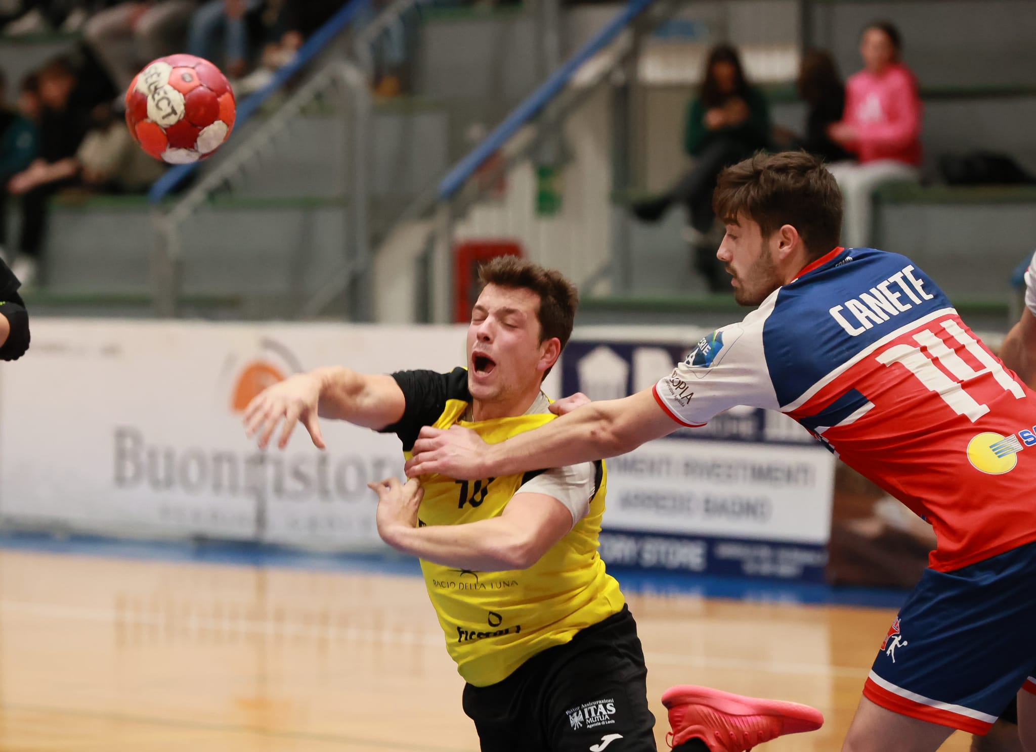 In avvio di secondo tempo “rosso” a Sontacchi per un intervento rude su Vanoli, ma Pressano è presente: i gialloneri difendono bene ed attaccano con precisione. Doppio Rossi, poi D’Antino fanno 17-13 e proprio nel momento migliore il meccanismo giallonero si ferma; Fondi reagisce con ordine ed arriva anche al pareggio, 18-18 dopo 11’ di gioco nella ripresa. Tutto da rifare per Pressano che non si scompone, anzi, ricomincia a macinare gioco: Loizos chiude la porta come ormai ha abituato, il Palavis si scalda ed i gialloneri sfruttano un Andreasson scatenato (9 reti e top scorer) per infilare il nuovo break che vale il 23-18, partita in ghiaccio. Ultimi minuti di amministrazione, con i gialloneri che conducono in porto il successo fra i tanti sorrisi della squadra e del pubblico di casa.