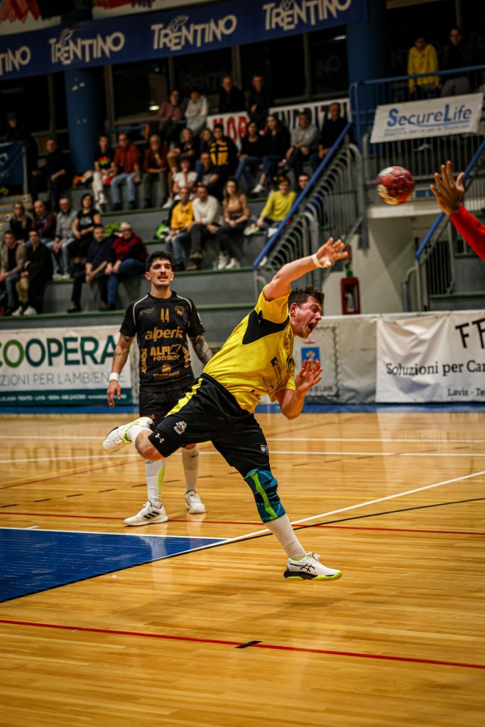 La ripresa avanza con Cingoli sempre avanti di 3-4 reti, fino al massimo vantaggio sul 29-24 a metà secondo tempo. Qui Pressano cambia la partita: 3 minuti di sprint e break che vale il 29-27, poi l’ultimo quarto d’ora è battaglia. Ancora KO Lozios che lascia spazio a Facchinelli, Hamouda in attacco (sempre più capocannoniere della Serie A Gold con 12 marcature) si carica la squadra sulle spalle con D’Antino e Fraj e Pressano la ribalta: rete su rete, con una difesa fantastica, i gialloneri pareggiano a 4’ dalla fine. La squadra di casa si perde nel finale, Pressano recupera continuamente palloni, Rossi firma il primo vantaggio sul 34-35, poi Hamouda chiude i conti a 20” dal termine, fra tripudio ed incredulità per un’altra grande impresa firmata. Sabato al Palavis delicatissimo scontro chiave contro il fanalino di coda Carpi.