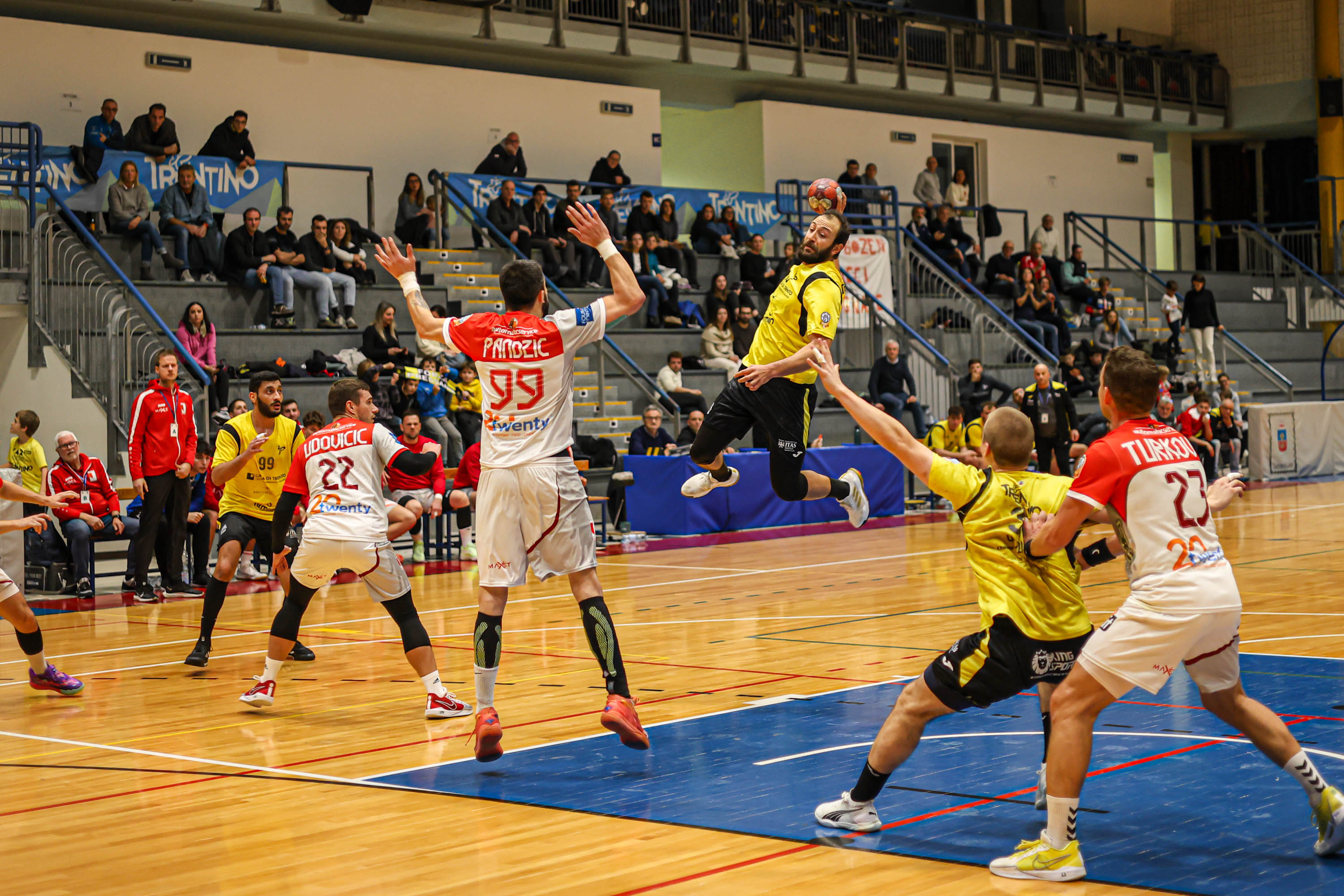 Pressano: Facchinelli, Dallago 1, Moser M. 1, Villotti, Rossi N. 1, D’Antino 11, Rossi F. 5, Hamouda 7, Folgheraiter, Boev, Moser N. 2, Loizos, Gazzini, Mizzoni 1, Luchin, Fraj 3. Dumnic