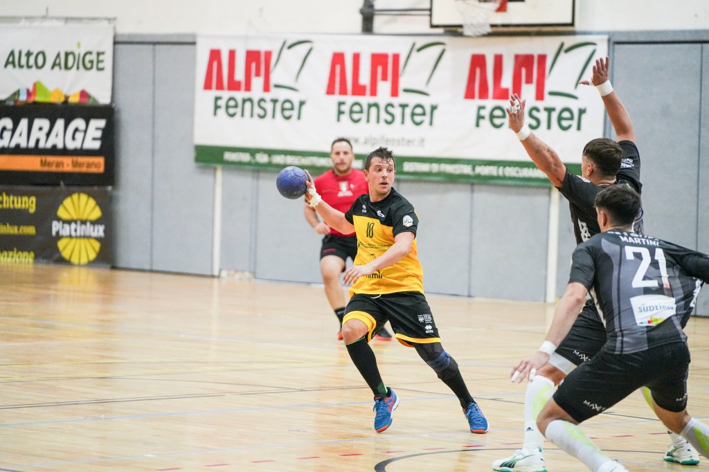 La prima sirena manda tutti negli spogliatoi sul 19-19 e nella ripresa è battaglia vera: botta e risposta continui, ritmi altissimi e partita spettacolare che non vuole prendere una via ben precisa. Pressano spreca molto, Bressanone è alle corde ma il punteggio resta in equilibrio, anche dopo il “rosso” diretto al bomber giallonero Hamouda: sul 28-28 la precisione di Fraj e lo show di D’Antino (10 reti e top scorer) lanciano Pressano, con Soria imbeccato sulla linea dei 6 metri ed infallibile. Ci si mette anche la classe di Nicola Rossi da terzino e Pressano scappa, 30-28 è il massimo vantaggio momentaneo quando mancano 12 minuti, un’eternità. Il Palavis si scalda, gli animi in campo restano placati e la partita è meravigliosa: gesti tecnici da 10 in pagella da ambo le parti, con Canete e Vinicius a provare a tenere su Bressanone ma Pressano ha più cuore, grinta e determinazione. Colpo di reni ancora con Rossi e Soria, 35-32 a 2 minuti e mezzo dal termine ma c’è tempo per soffrire: tre palloni regalati in mano a Brixen fanno accorciare gli avversari fin sul 36-35 con due attacchi del pareggio che avrebbe i contorni di una beffa. Loizos prima e la difesa poi dicono di no: è trionfo Pressano. Sabato prossimo servono conferme sul duro campo marchigiano della neopromossa Camerano.