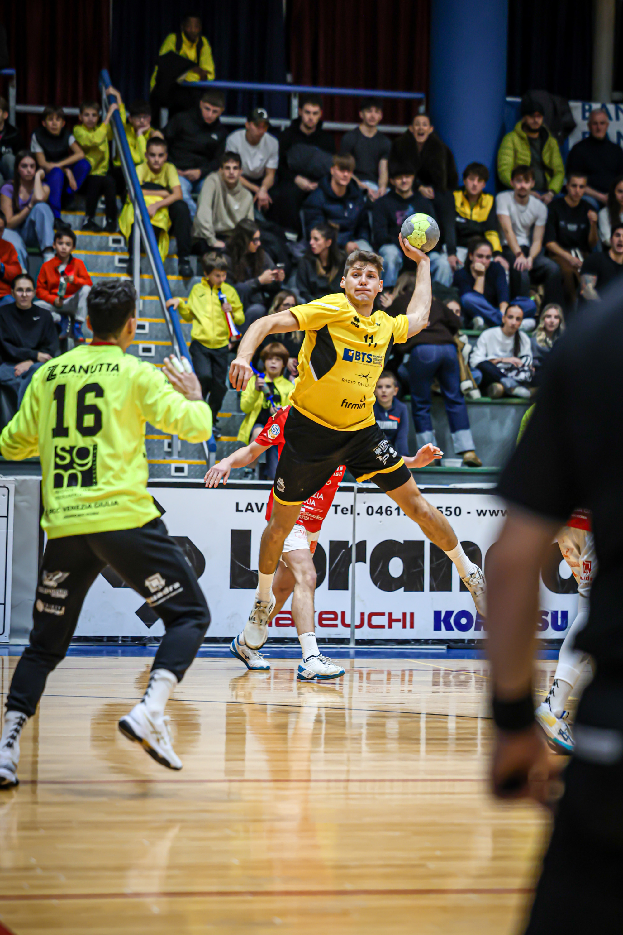 Nuova sconfitta e nuovo passo indietro per la Pallamano Pressano BTS che esce sconfitta dal PalaQuaresima di Cingoli nel cuore delle Marche col punteggio di 25-23. I gialloneri hanno confermato il periodo decisamente negativo ed hanno finito per arrendersi al termine di una partita comunque combattuta ma sempre giocata all’inseguimento per la truppa trentina. Priva di Rossi, Wierer e Martini, la squadra giallonera è scesa a Cingoli orfana anche del proprio mister Branko Dumnic, costretto a casa da una indisposizione, ed ha affidato la guida al vice allenatore Alain Fadanelli. Uno stop che pesa, perché non consente a Pressano di riprendersi e mette a repentaglio la qualificazione alla Final Eight di Coppa Italia: a due giornate dal termine dell’andata, i gialloneri dovranno ora vincere entrambe le prossime gare con Fasano e Bolzano e sperare in un incrocio di risultati che favoriscano l’accesso fra le prime otto. Ma in casa giallonera c’è poco da fare i conti: anche a Cingoli prestazione mesta, soprattutto in chiave offensiva, con i trentini mai in partita laconicamente e vicini ad un tentativo di rimonta nel finale, mai concretizzato. In avvio di partita buon piglio offensivo dei padroni di casa che passano subito a condurre, prima 6-4 e poco dopo 8-5 quando scocca la metà del prim tempo. Pressano non ingrana, trova le parate di Loizos ma non le reti ed al 20’ le cose si fanno difficili, 12-7 in favore di Cingoli, con il primo tempo che avanza poi equilibrato e vede Pressano recuperare leggermente negli ultimi 2 minuti, chiudendo sotto 16-13. Le cose non migliorano nella ripresa: subito 20-15 Cingoli, prima di una lunga sospensione della gara per l’infortunio ad Abdurhamanovic. Alla ripresa del gioco Pressano alza l’asticella in difesa e con tanta fatica comincia a recuperare, subendo solo 2 reti in 13 minuti e tornando sotto 22-20. Gli ultimi 10’ sono combattuti, con tanti errori e difese in evidenza: Cingoli difende il vantaggio coi denti e costringe Pressano alla sesta sconfitta stagionale sul 25-23. Sabato al Palavis arriveranno i pugliesi del Fasano e per i gialloneri il risultato possibile sarà soltanto quello della vittoria.
