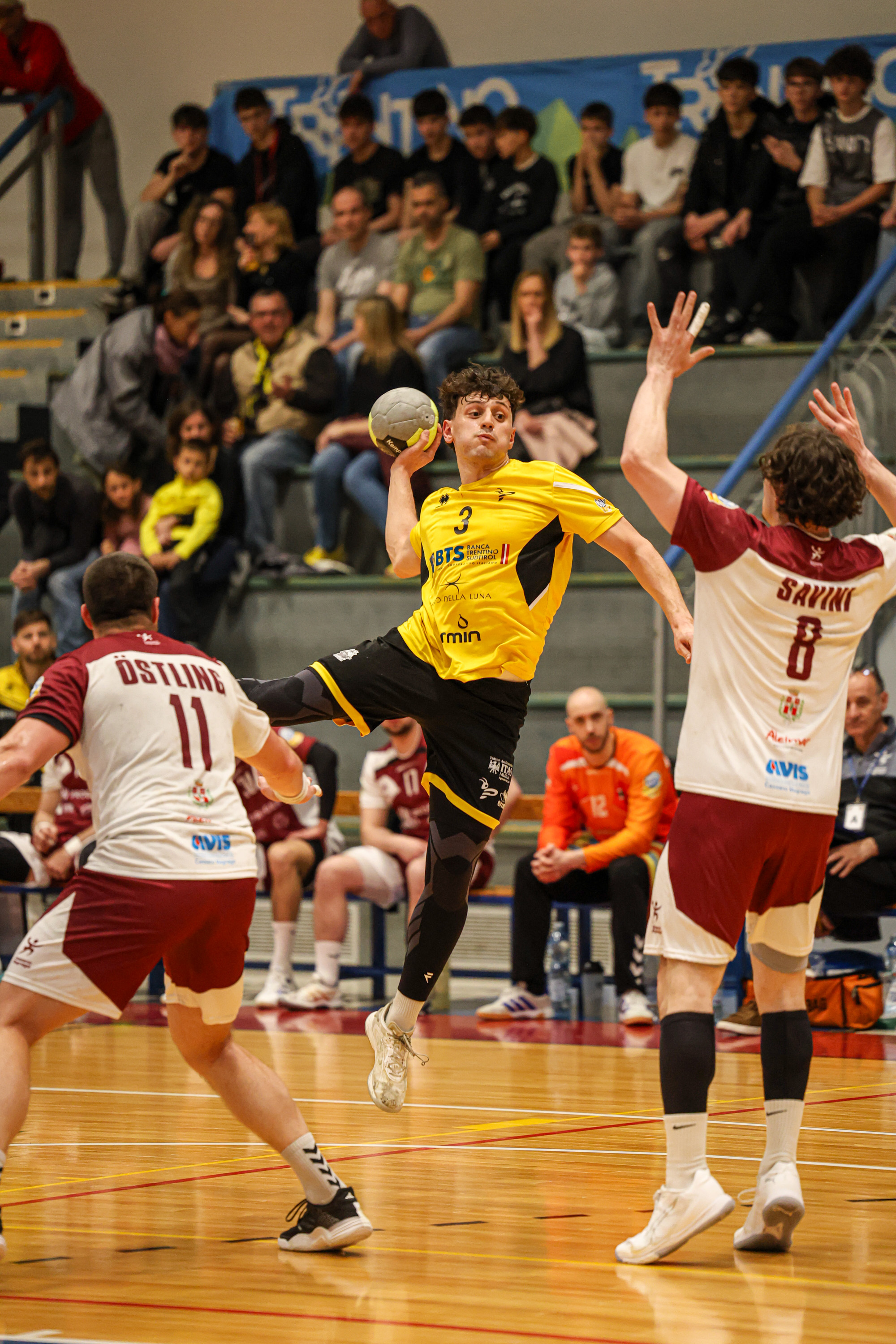 Sconfitta cocente per la Pallamano Pressano BTS che si arrende al Palavis al cospetto della capolista Cassano Magnago col punteggio di 29-30. I gialloneri sono stati freddati all’ultimo minuto dalla prima forza della massima serie dopo una partita entusiasmante, condotta per larghi tratti proprio dai padroni di casa, avanti anche di 2 reti negli ultimi minuti. È certamente lo stop più amaro della stagione per la squadra di Branko Dumnic, capace di gettare il cuore oltre l’ostacolo e gli infortuni, salvo poi dover cedere alla dura legge del campo. Bottino vuoto per Pressano che incassa due sconfitte di fila e dice pressochè addio ai sogni PlayOff, nonostante i favorevoli risultati degli altri campi avessero fatto sperare il team trentino durante la serata. Ancora una volta però Fadanelli e compagni hanno mostrato carattere da vendere, gioco e determinazione, trascinando il pubblico del Palavis in un turbine di emozioni concluso, purtroppo, nel modo peggiore. Partita scintillante quella che va in scena sul campo lavisano: avvio eccezionalmente prolifico e punteggio che segna già 6-6 dopo 11 minuti, prima del primo break giallonero dell’incontro targato Fadanelli per l’8-6. È proprio il numero 3 di Pressano a trascinare la squadra: con 11 reti a fine gara sarà di gran lunga il migliore marcatore dell’incontro. Subito il colpo a metà primo tempo, la capolista Cassano Magnago si scuote e piazza un immediato contro parziale che vale il +2 lombardo, 12-14 a 7’ dalla fine. In un’altalena di emozioni è ancora Pressano a prendere il comando proprio nel finale di frazione con Milovic, 16-15 all’intervallo. I gialloneri ci credono, mettono cuore e anima in campo: nonostante le assenze di Wierer e Vagnoni che tolgono due rotazioni nette allo scacchiere trentino, la squadra di Pressano fa vedere il meglio di sé. Nel secondo tempo infatti i gialloneri restano sempre avanti nel punteggio, trascinati ancora da un Fadanelli incontenibile che toglie continuamente le castagne dal fuoco. Cassano Magnago però non molla, pareggia 27-27 al 53’ ma ancora una volta più col cuore che con la forza Pressano allunga, 29-27 a 3 minuti e mezzo dal termine. Qui la luce si spegne: le forze mancano, Cassano Magnago infila uno 0-3 nel finale facendo tesoro degli errori sui tiri facili gialloneri, anche Fraj a 4 secondi dalla fine sbaglia il tentativo del pari e Pressano finisce sconfitto. Poco tempo per recuperare ora, perché mercoledì va in scena un delicatissimo turno infrasettimanale a Merano per risollevare testa e classifica.