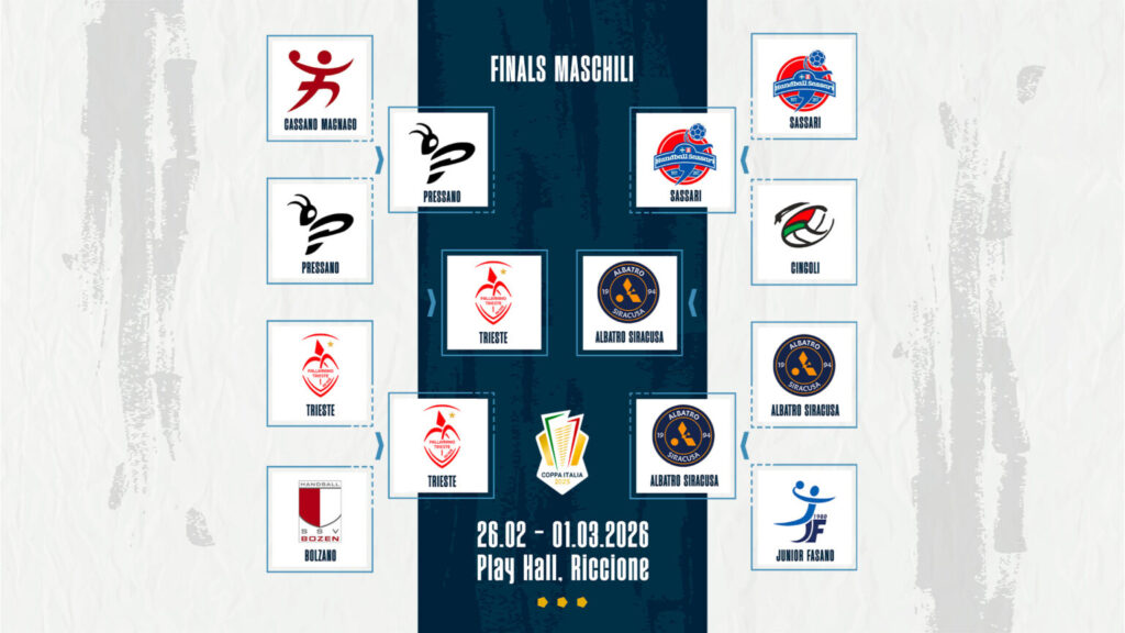 La 41^ edizione della Coppa Italia maschile si disputerà dal 26 febbraio all’1 marzo presso la Play Hall di Riccione, con la formula di Final Eight. Si sono qualificate le prime 8 squadre classificate al termine del girone d’andata di Serie A Gold 2025/26.